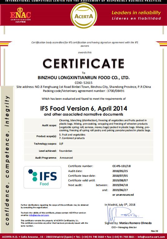 IFS:國際食品標準是由HDE-德國零售商聯(lián)盟和FCD-法國零售商和批發(fā)商聯(lián)盟共同制定的食品供應(yīng)商質(zhì)量體系審核標準,該標準在德國和法國等歐洲國家比較有影響力,也獲得國際食品零售商聯(lián)合會認可。